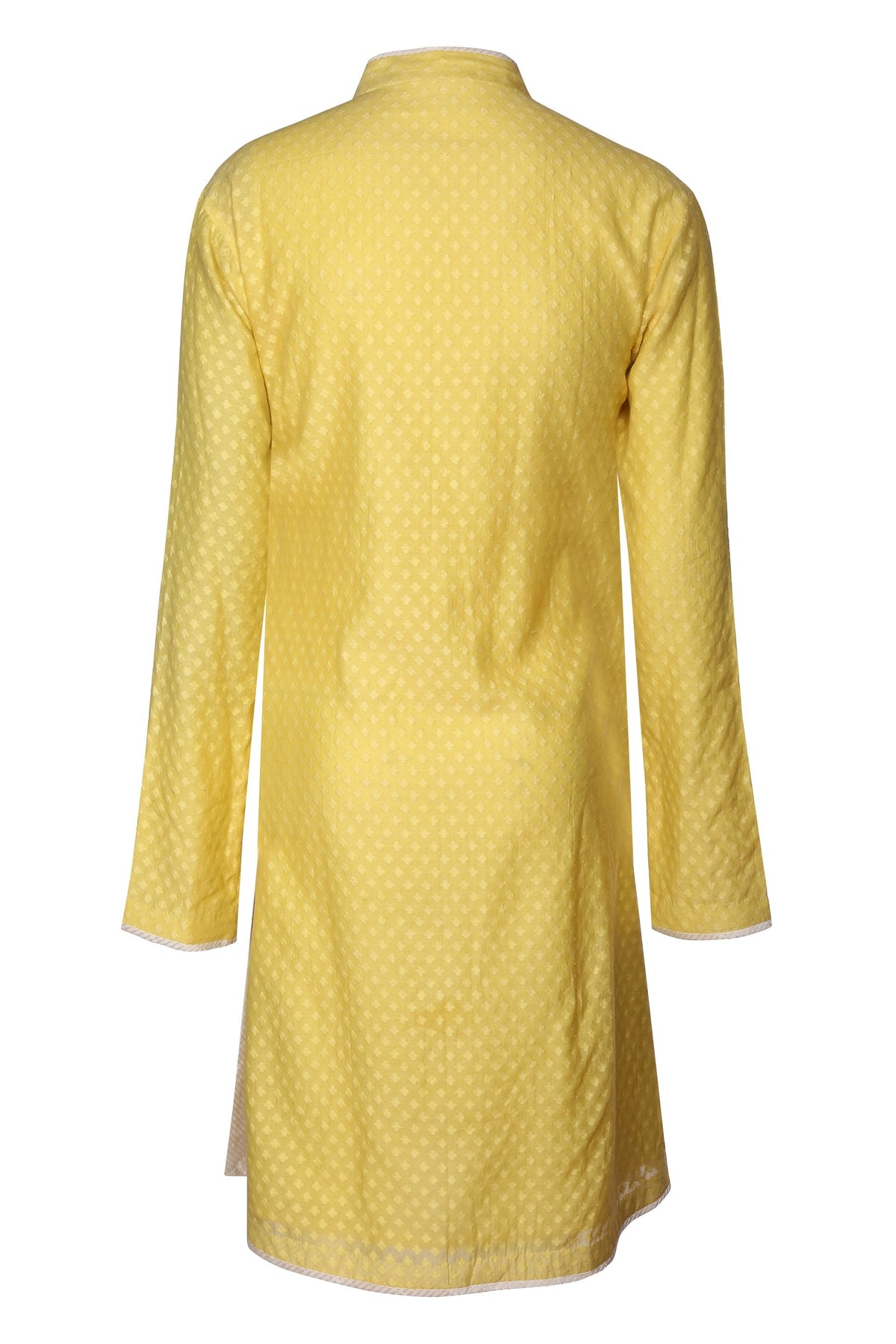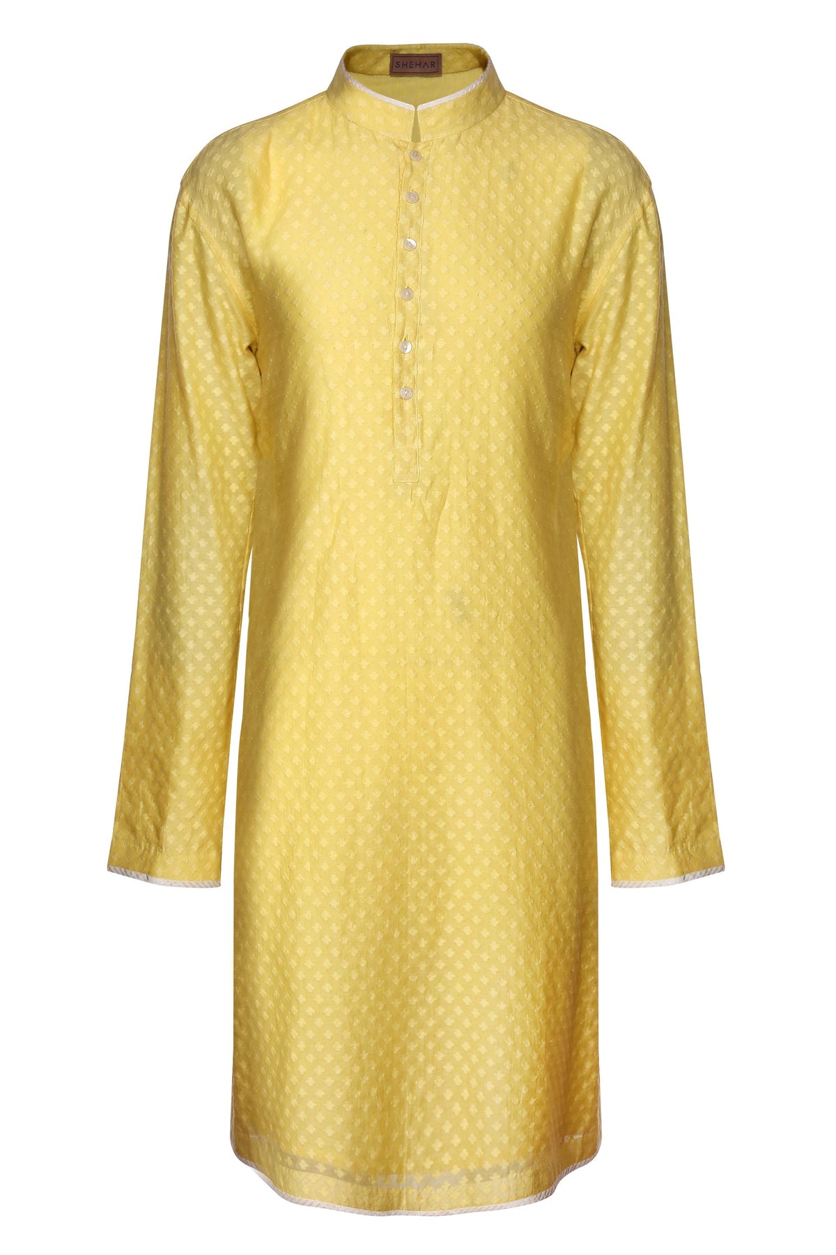 YELLOW CLASSIC CHANDERI JACQUARD KURTAYELLOW CLASSIC CHANDERI JACQUARD KURTA